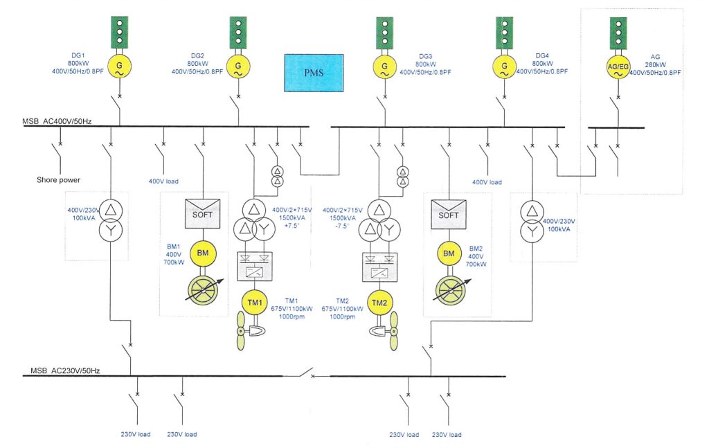 2) Rich electrical interfaces, providing interfaces with ship-borne shore power and AMS system;